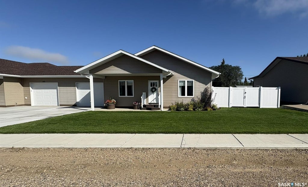 Opportunities like this don’t come along very often. Brand new in 2023 and almost 1300sq.ft, on a quiet street in a lovely village and so tastefully finished, this half-duplex has everything you need on one level and could be easily converted to wheelchair accessible. It has an attached heated garage, 2 spacious bedrooms, an open concept great-room with a beautiful gas fireplace and automatic blinds on the windows. There’s a large walk-in shower in the walkthrough bathroom, a sheltered backyard patio, and the large backyard with plush turf has enough room for a garden and shed if you wish. Comes with a Generlink generator for peace of mind in case of a power outage and air conditioning for the summer heat. Perfect for downsizing from a farm or retiring from the city, yet plenty of room for a family. Glaslyn has all the basic amenities, and is within 45 minutes of 3 different hospitals and 5 different lakes. Book your private tour today!